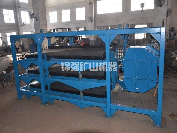懸掛式搖床在選礦設備中是重選的主要設備之一,懸掛式搖床廣泛用于選別鎢、錫、鉭、鈮、鐵、錳、鉻、鈦、鉍、鉛、金等稀有金屬和貴金屬礦石,懸掛式搖床還可用于煤礦開采。懸掛式搖床進行粗選、選精、掃選等不同的作業(yè),可選用粗砂(2-0.5mm)、細砂(0.5-0.074mm)、礦泥(-0.074mm)等不同粒級。懸掛式搖床還可用于選別鐵,錳礦和煤。對鎢、錫等礦石進行處理后,懸掛式搖床有效回收粒度在2~0.022毫米之間。